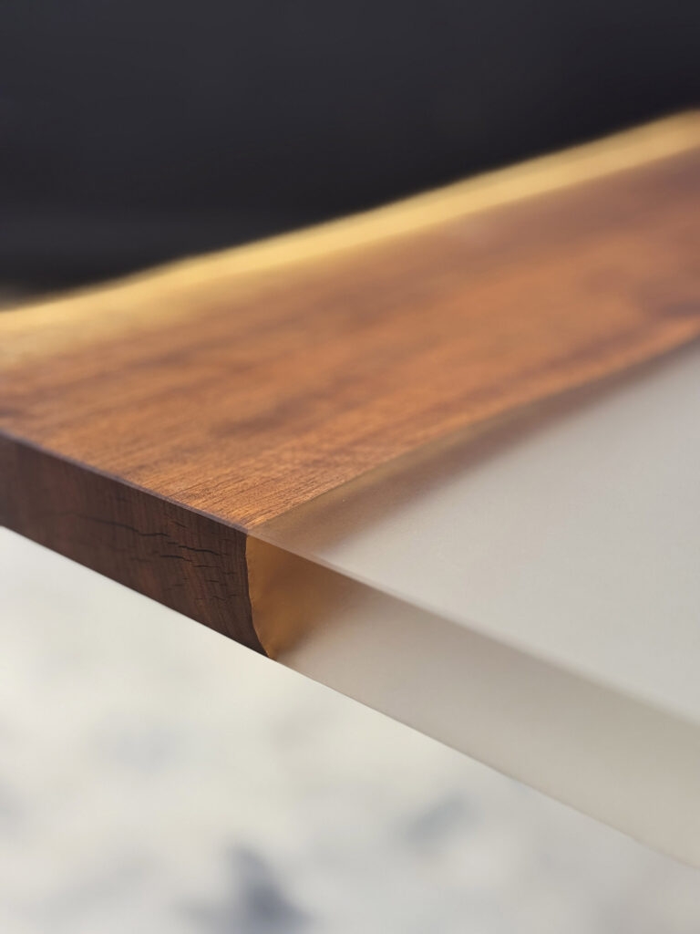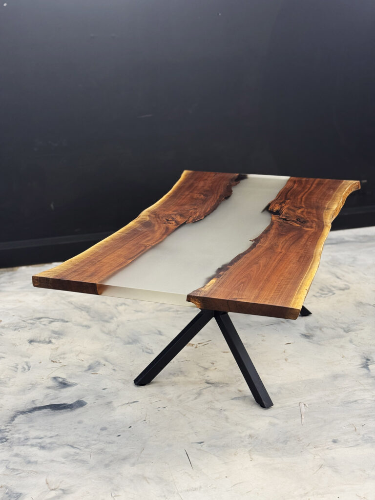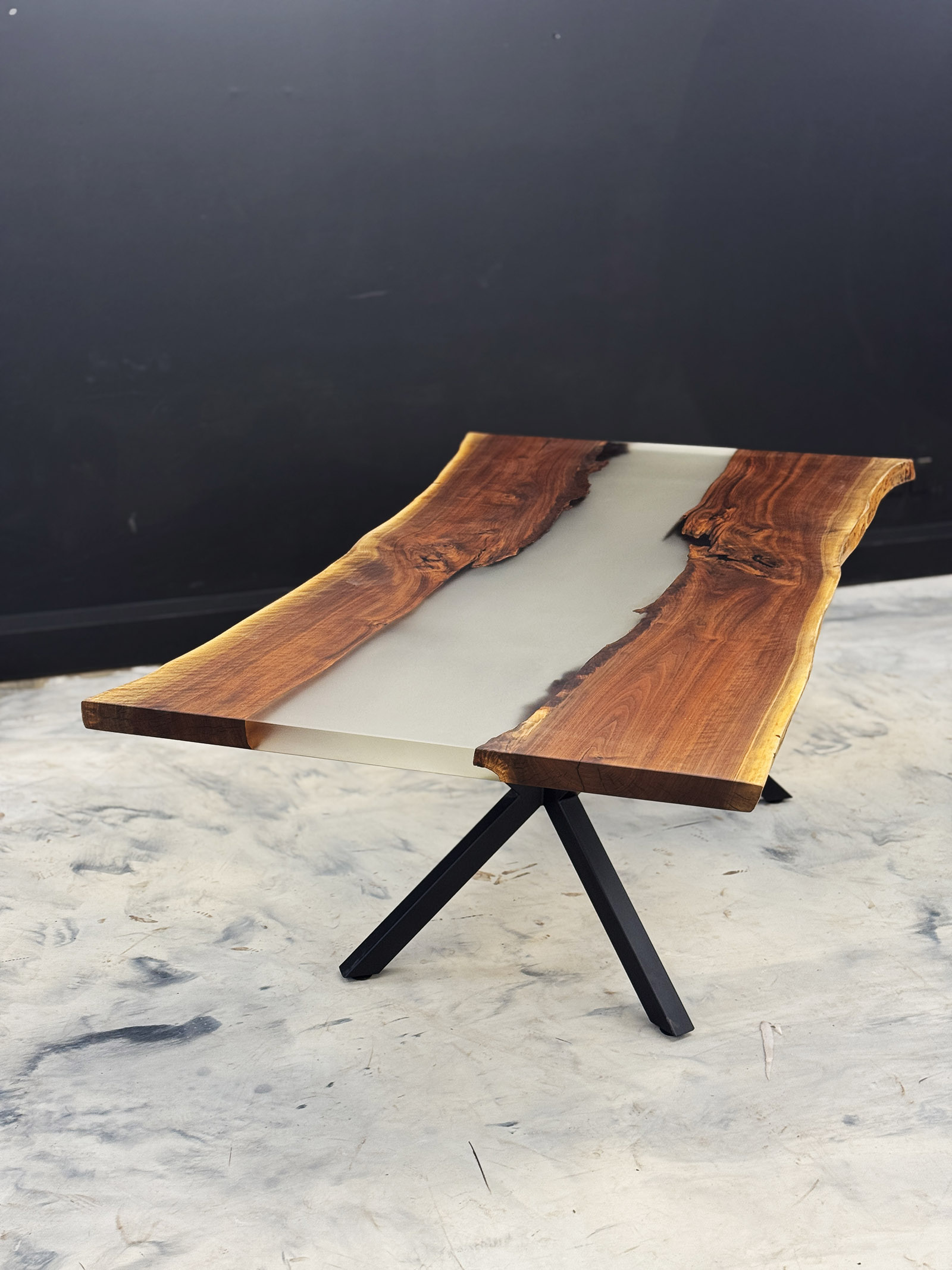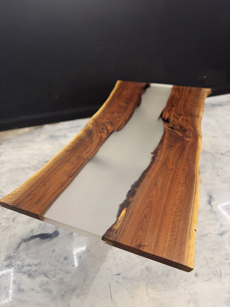 Unusually wide river on this Single Walnut slab that was split in half. Personally I really like the frosted look. We can cut to smaller size, or square it up. Price inlcudes top only.
